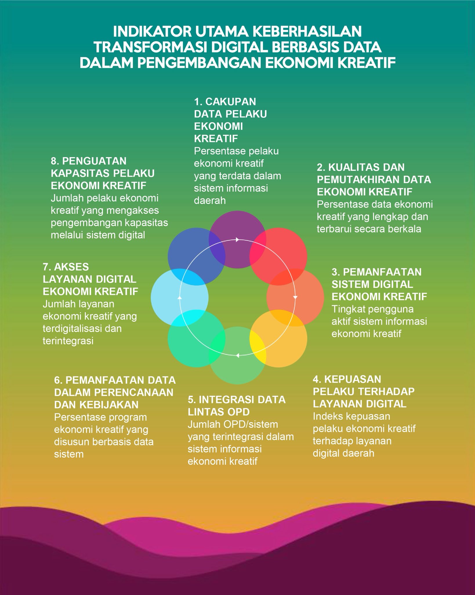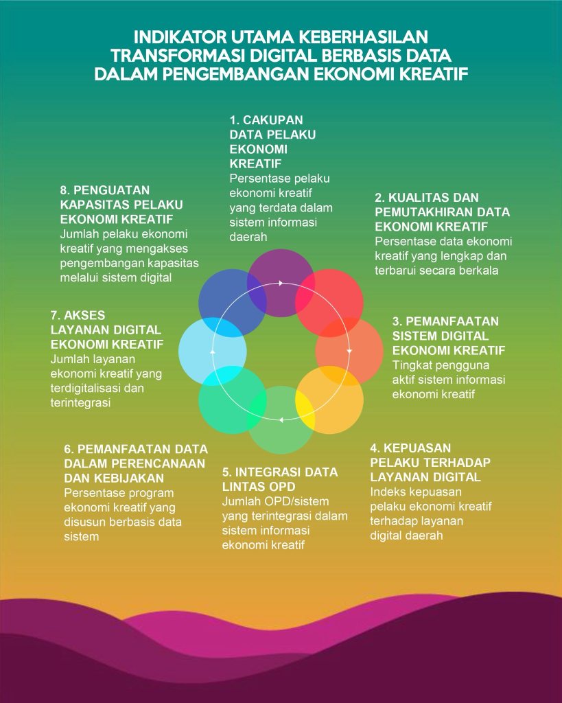 Transformasi digital berbasis data dalam pengembangan ekonomi kreatif menghadapi tantangan yang tidak hanya bersifat teknis, tetapi juga struktural dan kultural. Ketersediaan & kualitas data ekonomi kreatif masih belum merata, sementara sistem digital kerap berjalan terpisah antar sektor. Di sisi lain, kesiapan sumber daya manusia dan budaya kerja berbasis data masih terus berproses, sehingga pemanfaatan data belum sepenuhnya optimal. Tantangan kepercayaan, tata kelola, dan keamanan data turut memengaruhi partisipasi pelaku ekraf. Selain itu, keberlanjutan & inklusivitas transformasi digital menjadi isu penting agar perubahan ini tidak berhenti sebagai proyek jangka pendek, melainkan benar-benar memperkuat ekosistem ekraf. Karena itu, transformasi digital tidak cukup hanya dibangun namun ia harus pula diukur. Diperlukan indikator yang jelas dan terarah untuk menilai kualitas data, tingkat pemanfaatan sistem, kepuasan pelaku, hingga dampaknya terhadap pertumbuhan dan daya saing ekonomi kreatif. Indikator menjadi kompas yang memastikan setiap langkah transformasi tidak kehilangan arah, serta menjadikan data bukan sekadar arsip digital, melainkan fondasi bagi kebijakan yang hidup dan berdampak nyata. Indikator keberhasilan dalam transformasi digital berbasis data pada akhirnya menjadi cermin sejauh mana perubahan itu benar-benar terjadi. Keberhasilan tidak hanya ditandai oleh hadirnya sistem digital, tetapi oleh tersedianya data yang berkualitas dan terbarui, sistem yang dimanfaatkan secara aktif oleh pelaku, serta layanan publik yang semakin responsif dan mudah diakses. Lebih dari itu, transformasi dinyatakan berhasil ketika data benar-benar menjadi dasar perumusan kebijakan, dan ketika pelaku ekonomi kreatif merasakan peningkatan kapasitas, akses peluang, serta daya saingnya. Kota Bandung sudah sejak lama memiliki sebuah Platform Digital Data Pelaku Ekonomi Kreatif yang bernama Patrakomala. Kiranya ke depan Patrakomala mampu bergerak dari tataran teknis menuju dampak nyata yang menguatkan ekosistem, memperbaiki tata kelola, dan menumbuhkan ekonomi kreatif secara berkelanjutan di Kota Bandung.