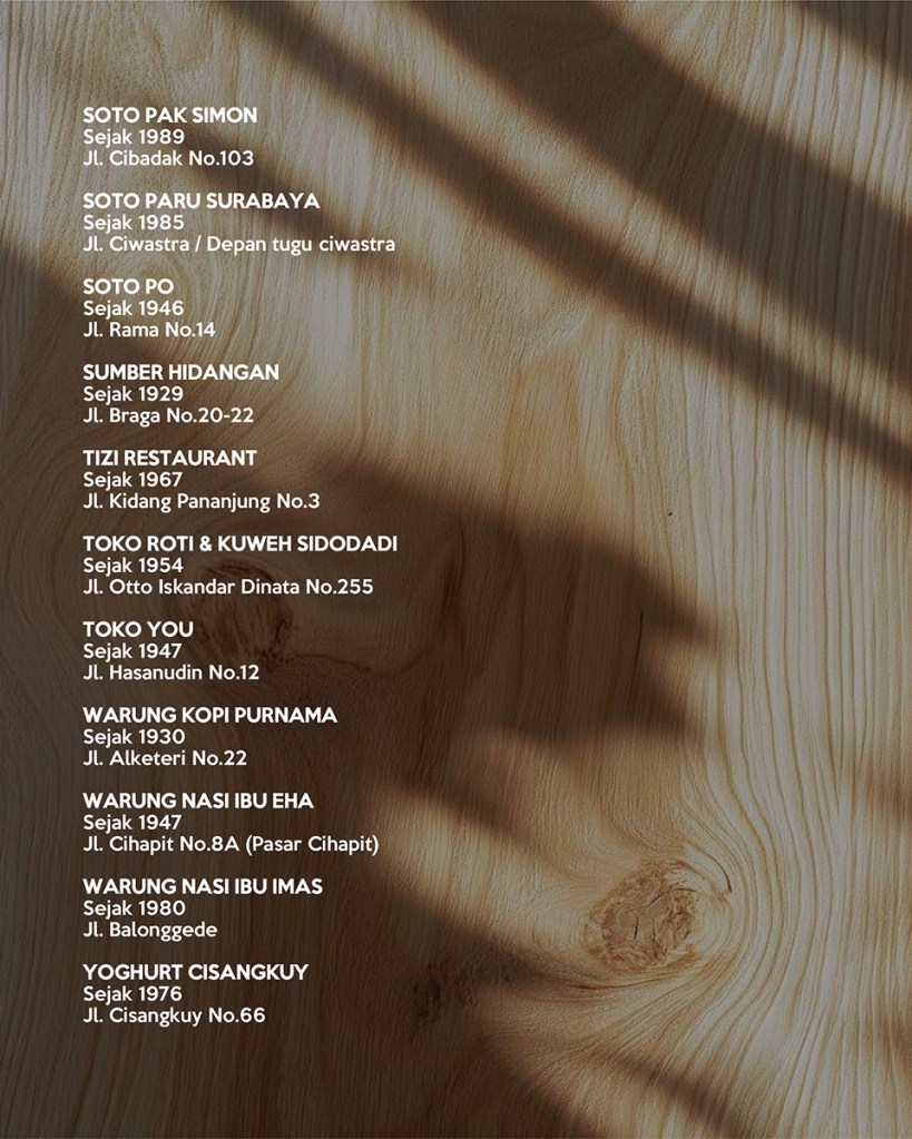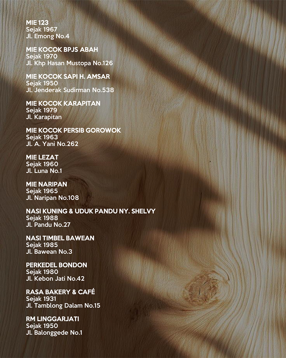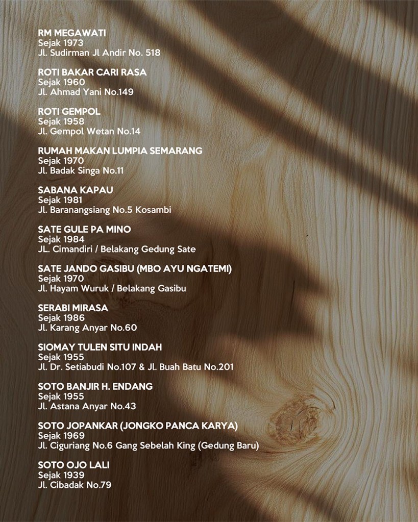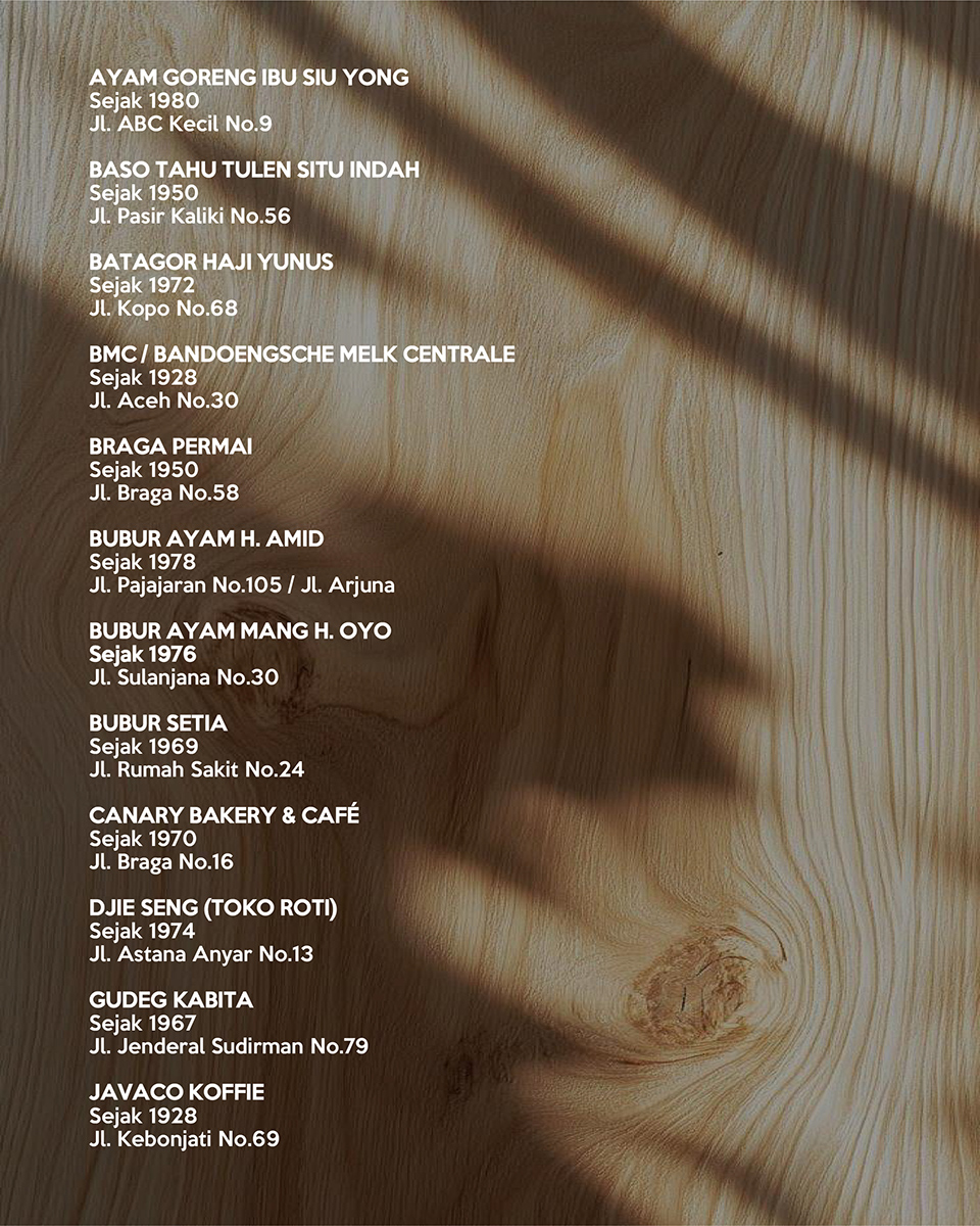 Praktik baik dari sub-sektor ekonomi kreatif kuliner ini dapat dilihat dari keberadaan sejumlah pelaku usaha legendaris yang tetap bertahan dan bahkan semakin relevan. Warung Kopi Purnama, yang telah berdiri sejak 1930, bukan sekadar tempat menikmati secangkir kopi, tetapi juga ruang nostalgia yang menghadirkan atmosfer tempo dulu di tengah kota yang terus berubah. Demikian pula Toko You yang telah ada sejak 1947, menghadirkan konsistensi rasa dan pengalaman bersantap yang otentik, menjadikannya bagian tak terpisahkan dari memori kolektif warga Bandung. Sementara itu, Toko Roti & Kuweh Sidodadi yang berdiri sejak 1954, menunjukkan bagaimana tradisi kuliner dapat diwariskan lintas generasi tanpa kehilangan jati diri dan hingga saat ini masih ramai dikunjungi oleh para penggemarnya.